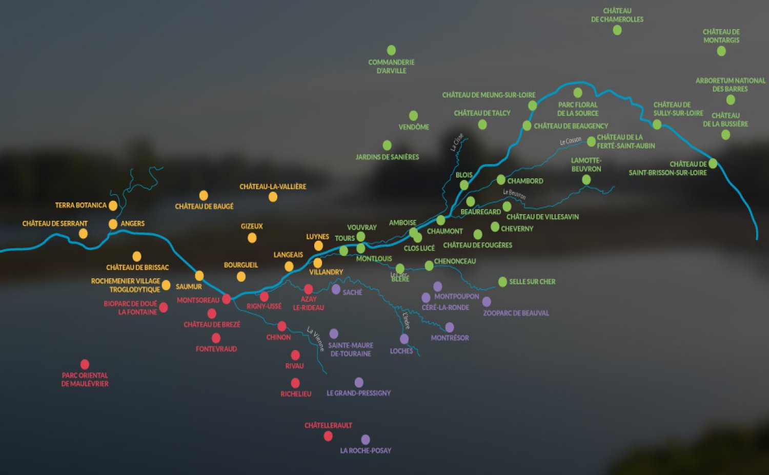 Tous ces châteaux sont principalement situés dans les régions Centre-Val de Loire et Pays de la Loire. Ils ont des liens directs ou indirects avec la vallée de la Loire, son histoire, son architecture, et forment la plus grande concentration au monde de ce type de monuments.